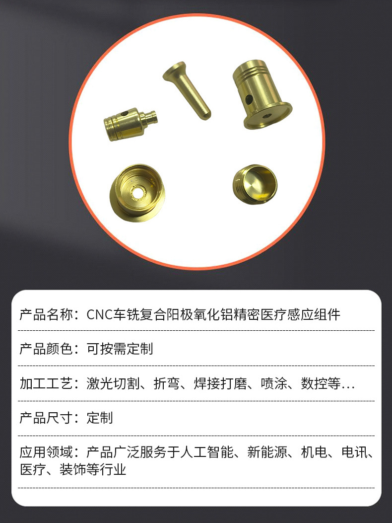 商品名称:定制CNC车铣复合阳极氧化铝精密医疗感应组件 电子五金非标零件