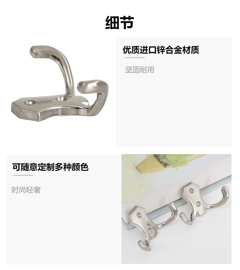 锌合金双衣钩现代简约风格 家用门后挂衣钩 浴室厨房多功能挂钩