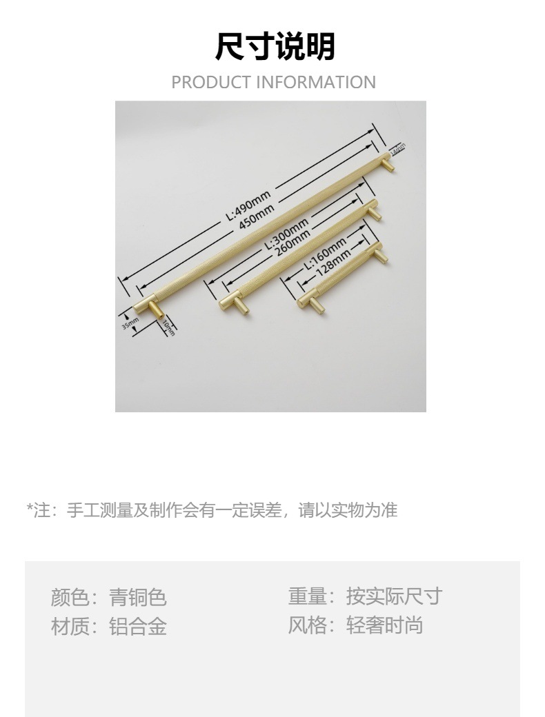 商品名称:现代简约风铝合金滚花拉手 适配各类家具柜门抽屉
