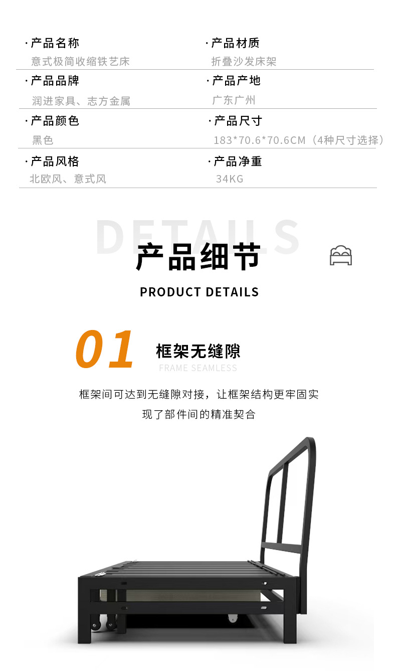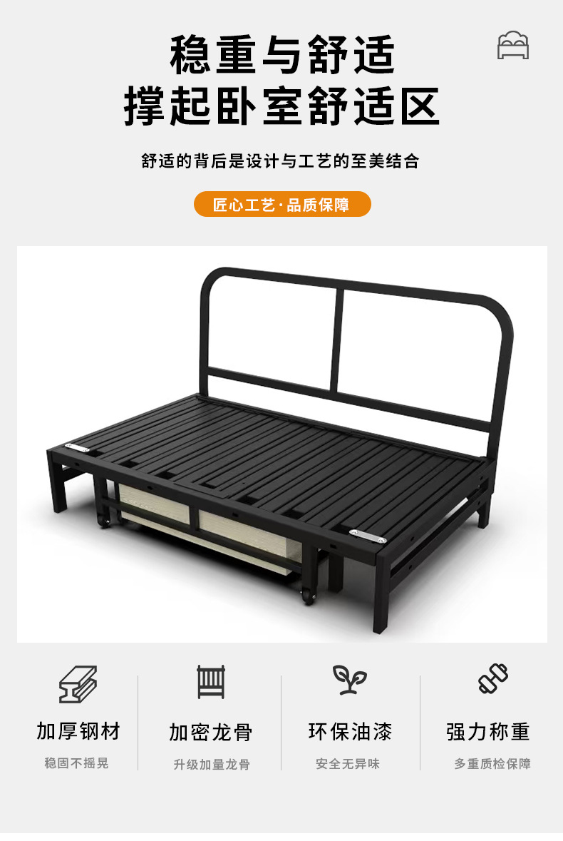 商品名称:三节伸缩推拉抽拉式金属床架两用沙发床铁架多功能铁艺承重沙发架