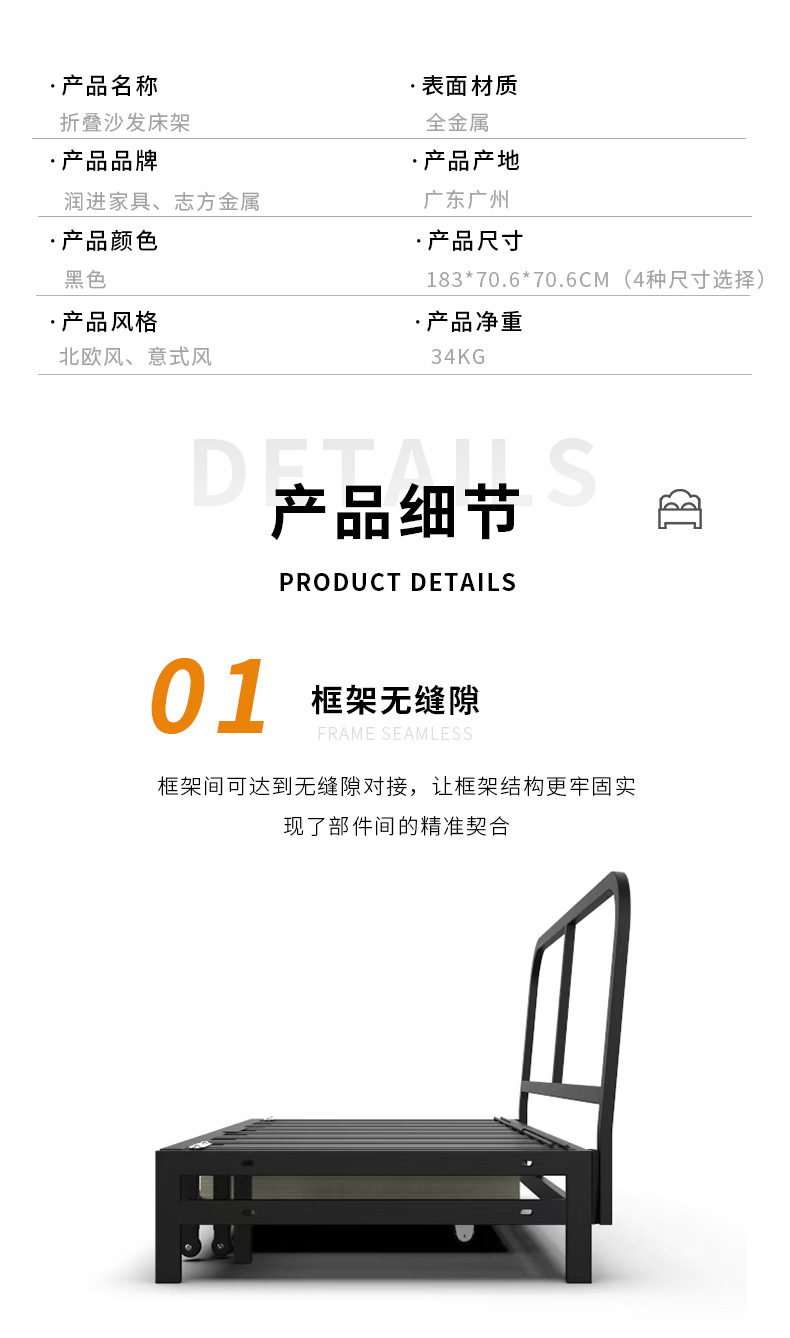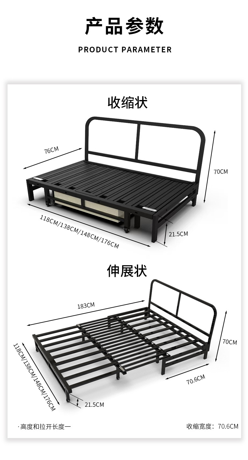 商品名称:铁艺推拉金属床架定制加粗加厚沙发架多功能免安装钢架沙发床架