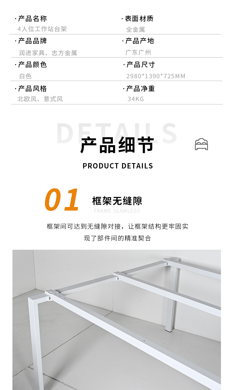 商品名称:4人工作台桌腿支架铁艺台式长条办公桌架多媒体教室会议电脑桌架