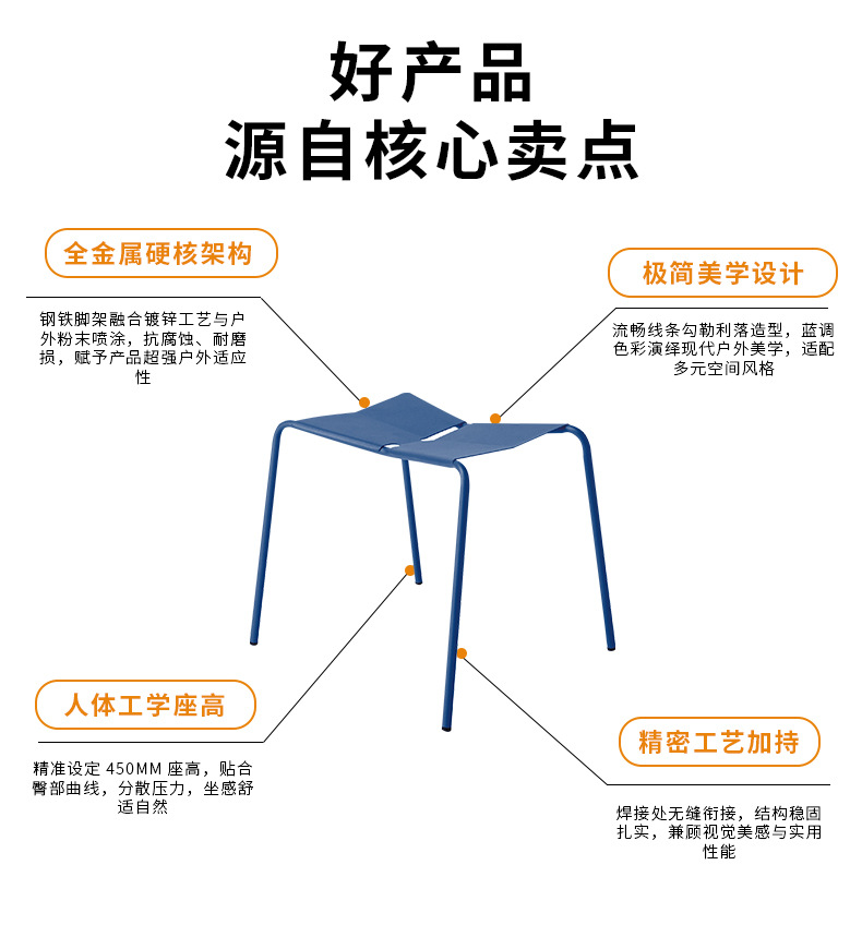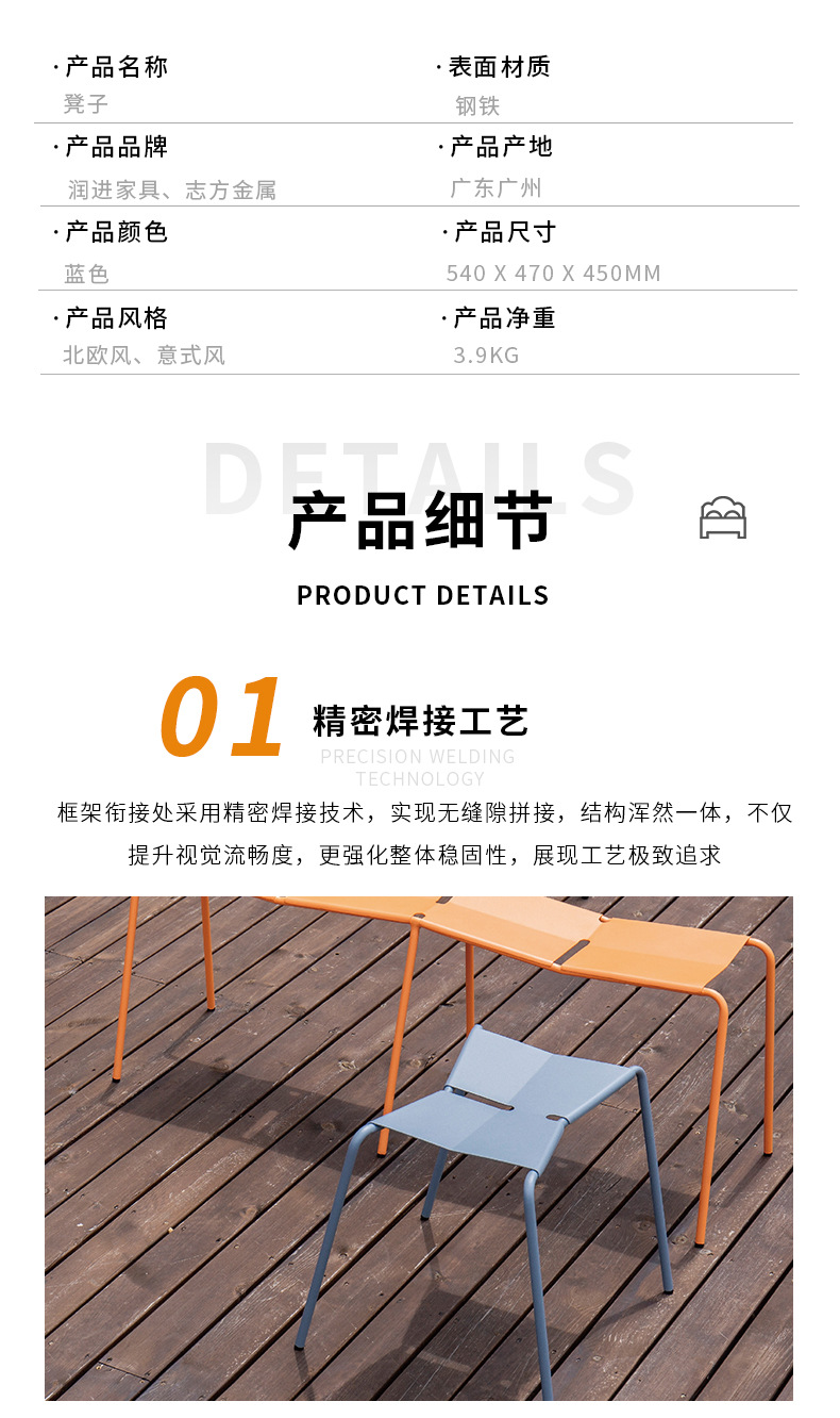 商品名称:北欧现代户外庭院凳休闲简约露台铁艺凳子加厚民宿奶茶店铁凳定制