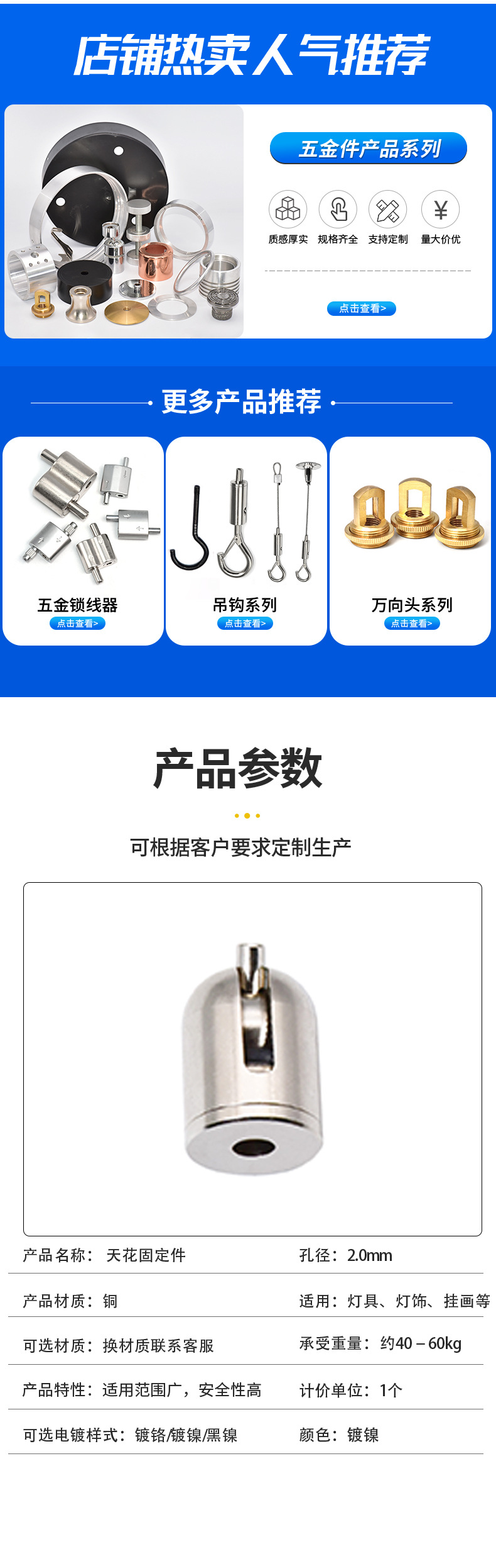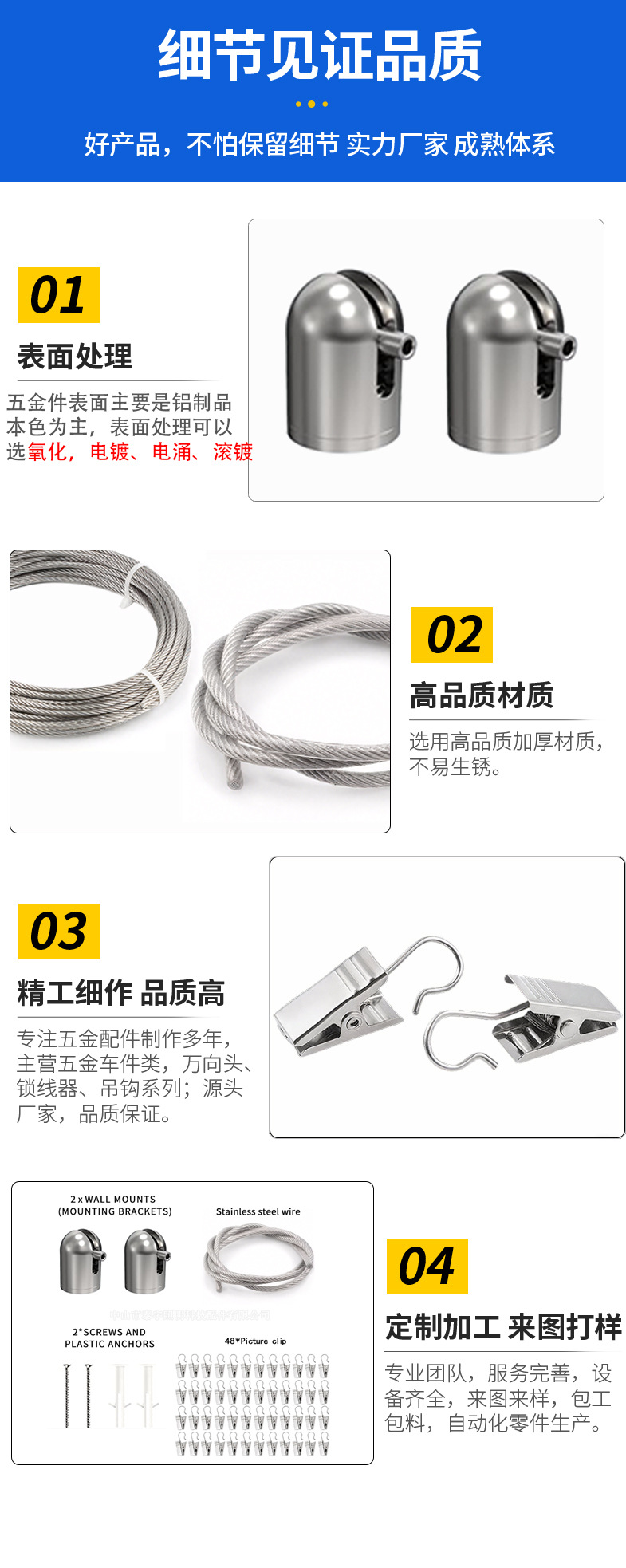 商品名称:可伸缩不锈钢钢丝绳锁线器吸顶吊灯调节吊线固定天花卡扣灯饰配件