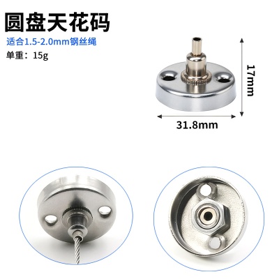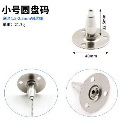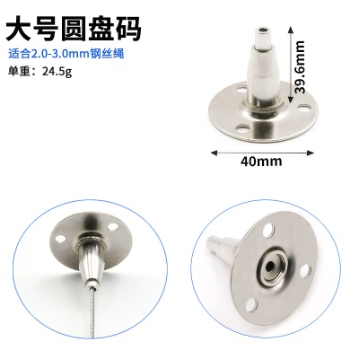 商品名称:钢丝绳吊码锁线器锁紧器可调节中珠活动拉爆圆盘码广告标牌吊绳件