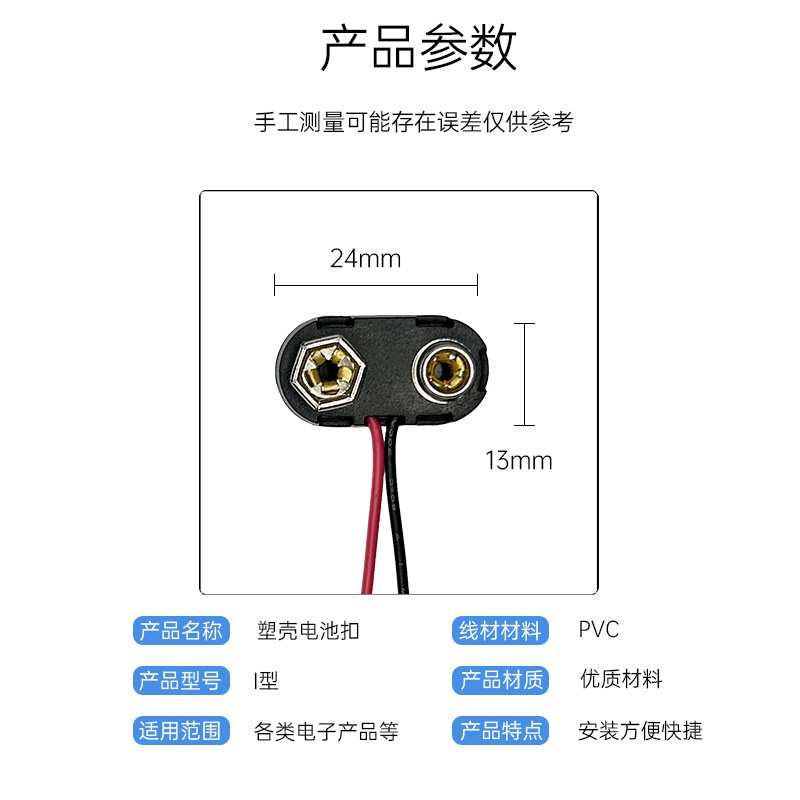 商品名称:T型硬扣9v电池扣 音频线接万用仪表仪器电池连接器塑胶9v电池线夹