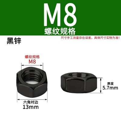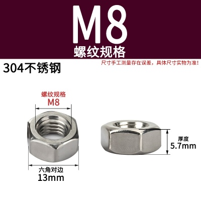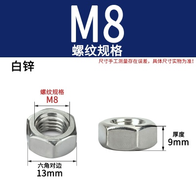 六角螺母(粗牙)M8加厚白锌
