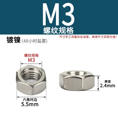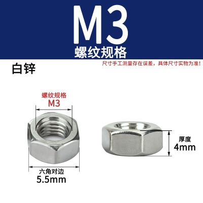 六角螺母(粗牙)M3加厚白锌