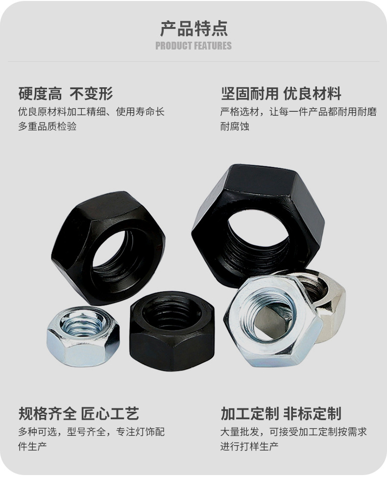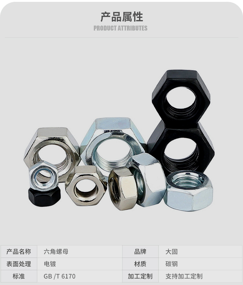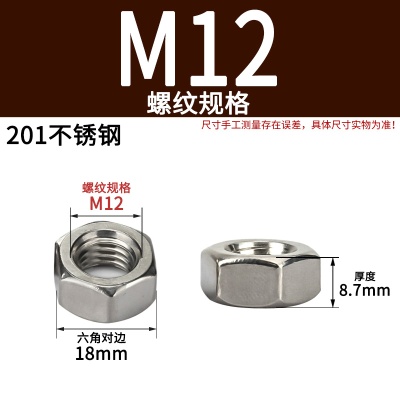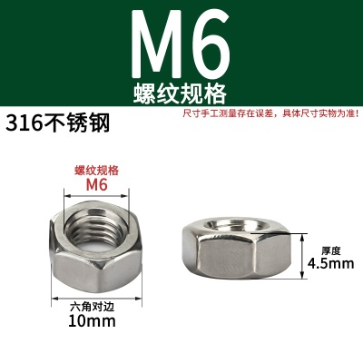 商品名称:六角螺母粗牙铁碳钢201不锈钢304 316白锌镀镍盐雾加大厚机械