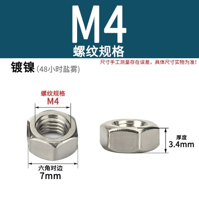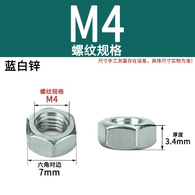 六角螺母(粗牙)M4加厚白锌
