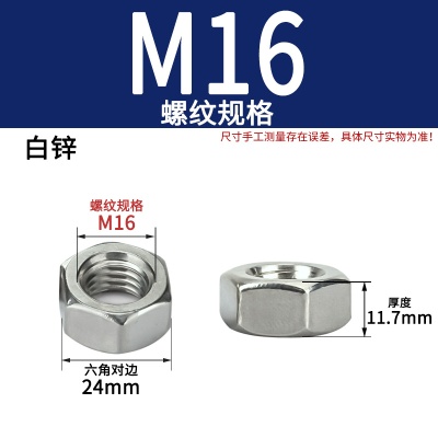六角螺母(粗牙)M16白锌
