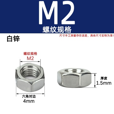六角螺母(粗牙)M2白锌