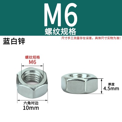 六角螺母(粗牙)M6白锌