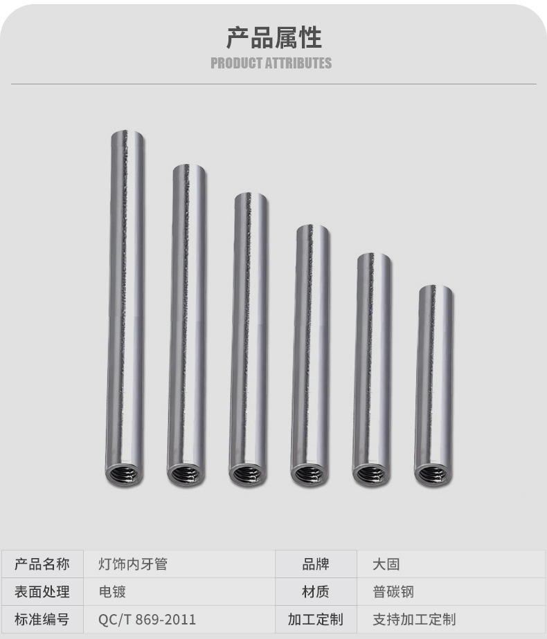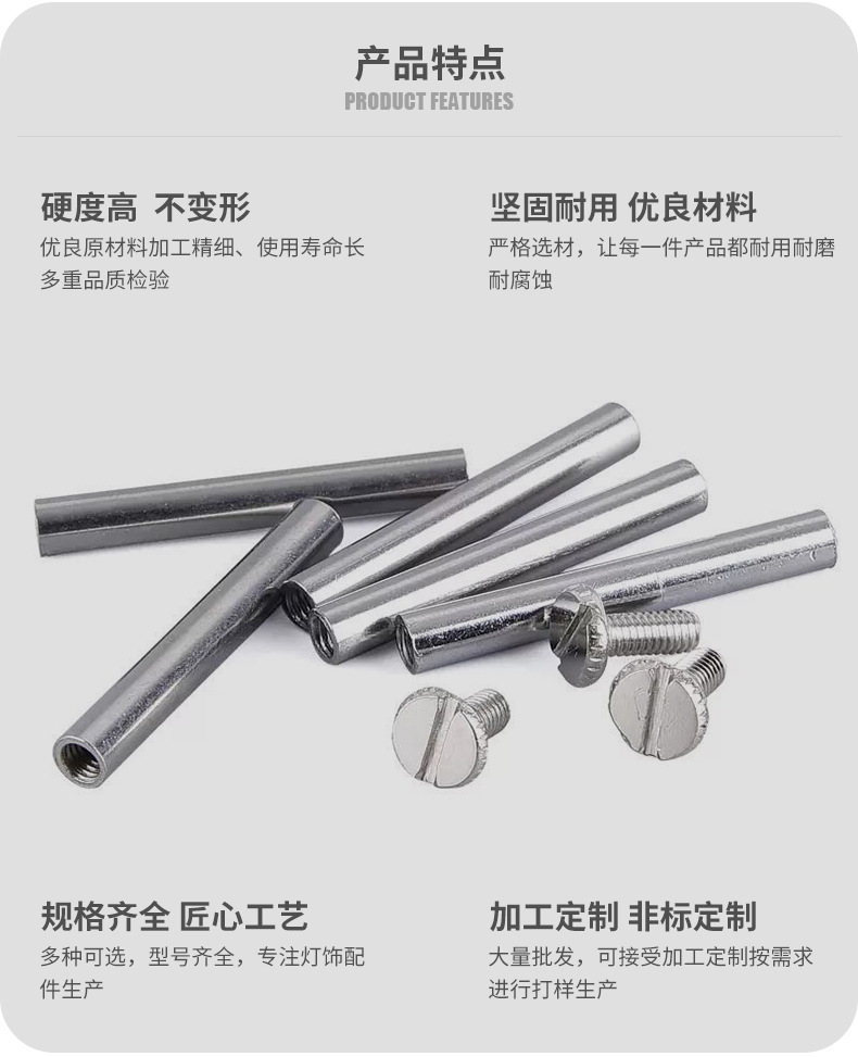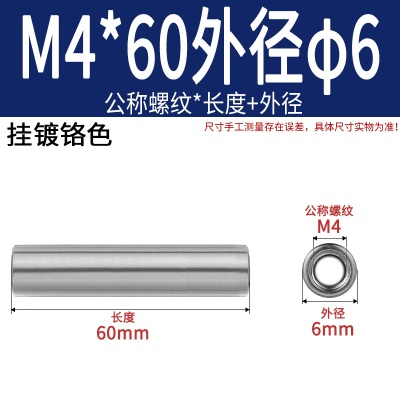 商品名称:空心内牙管螺纹连接件M4内牙棒灯饰工艺品亚克力通孔连接管挂镀铬