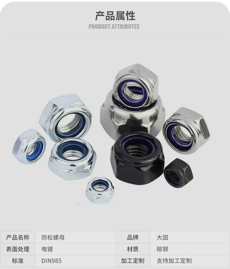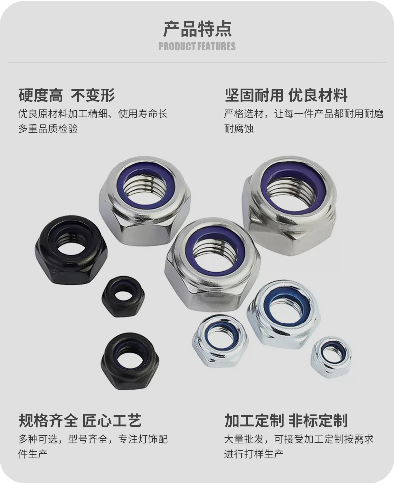 商品名称:防松螺母六角螺帽自锁螺母细牙尼龙防松螺母锁紧配件防脱过盐雾