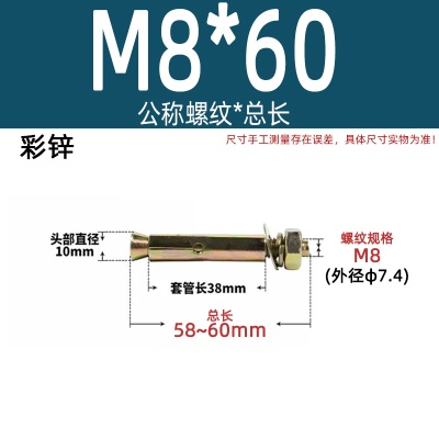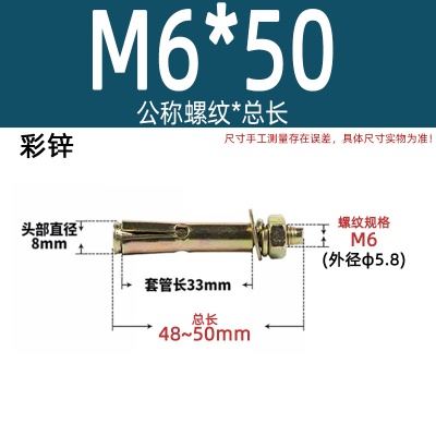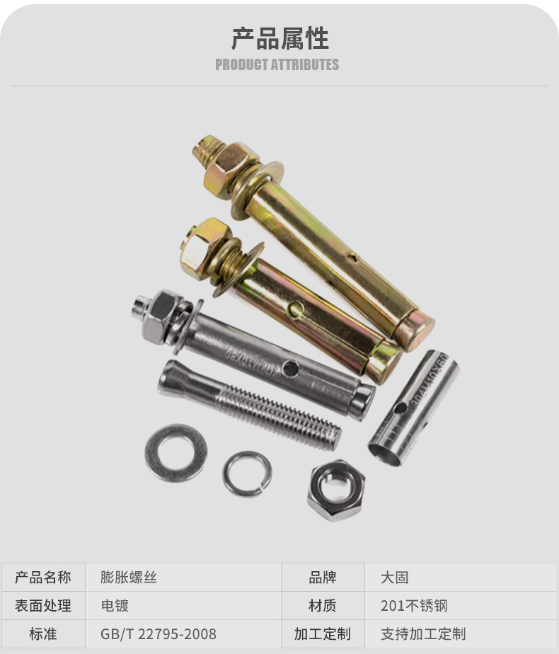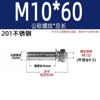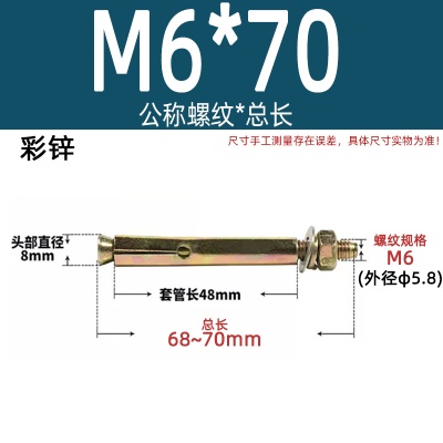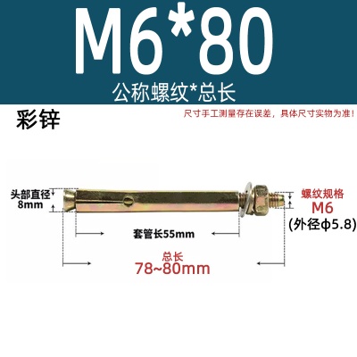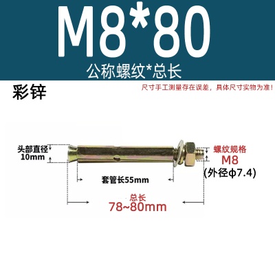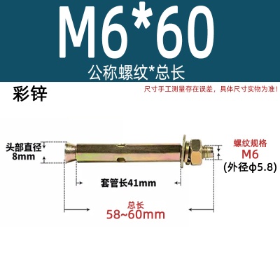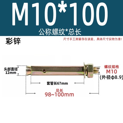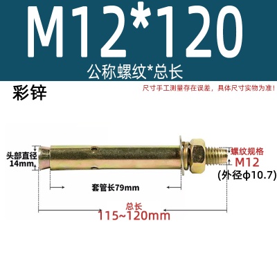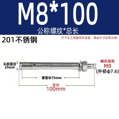 商品名称:膨胀螺丝201国标镀锌拉爆爆炸螺栓不锈钢加长彩锌M6M8M10M12M14