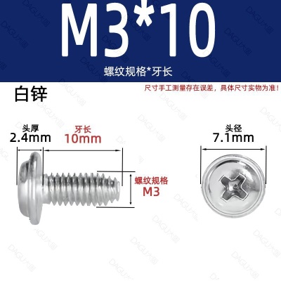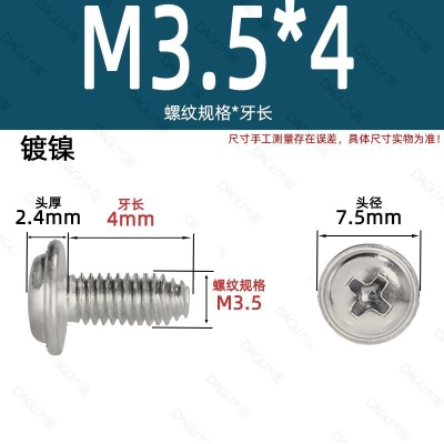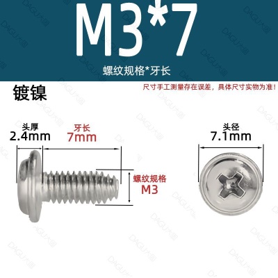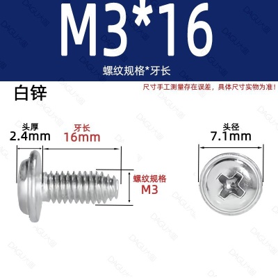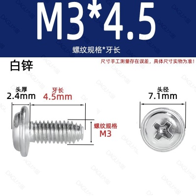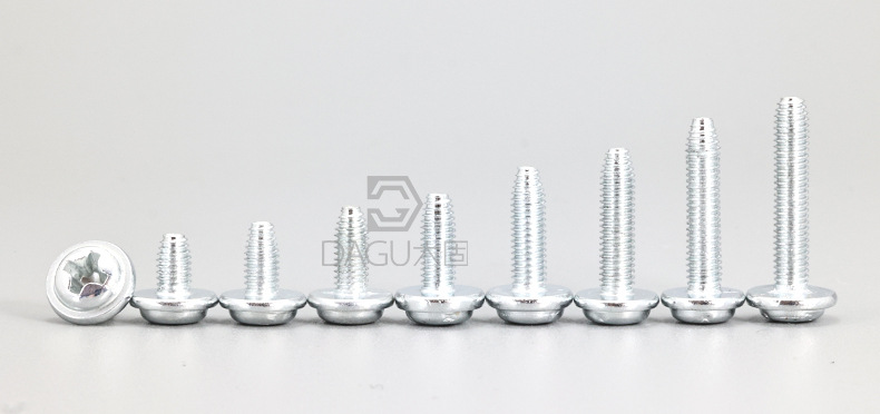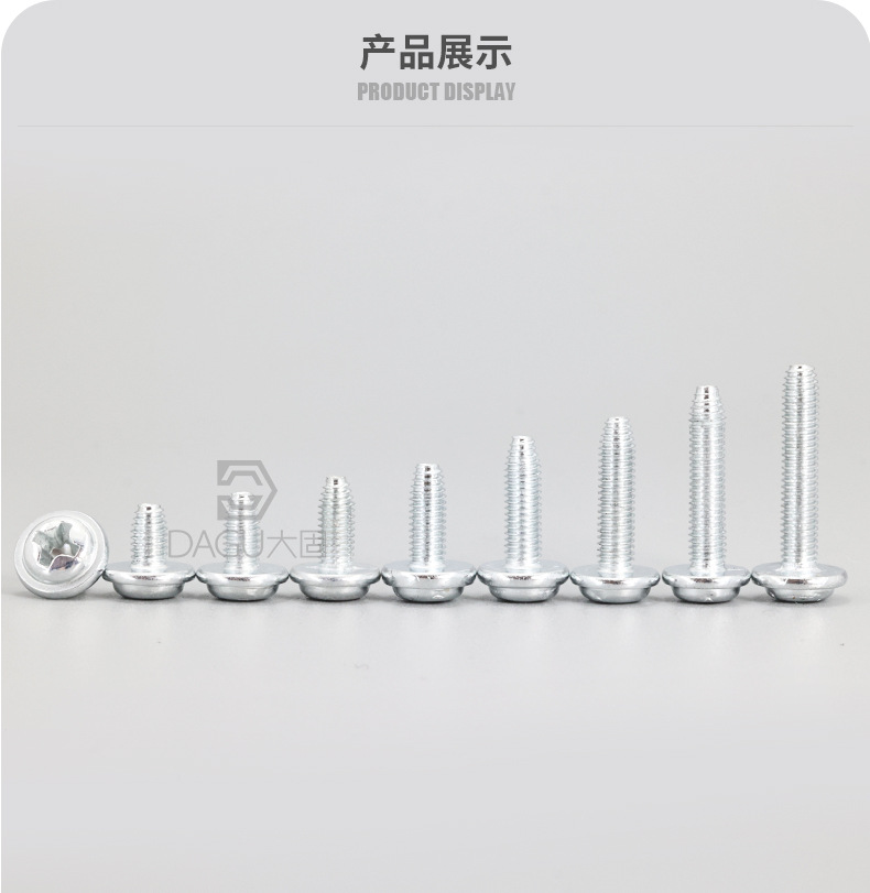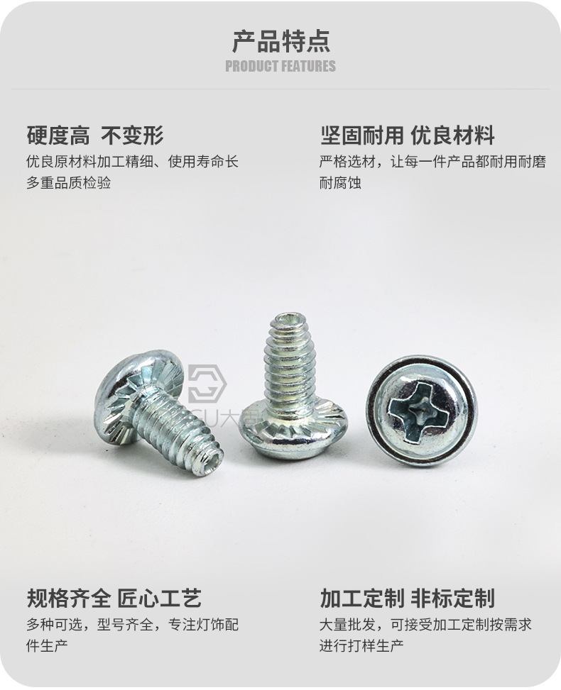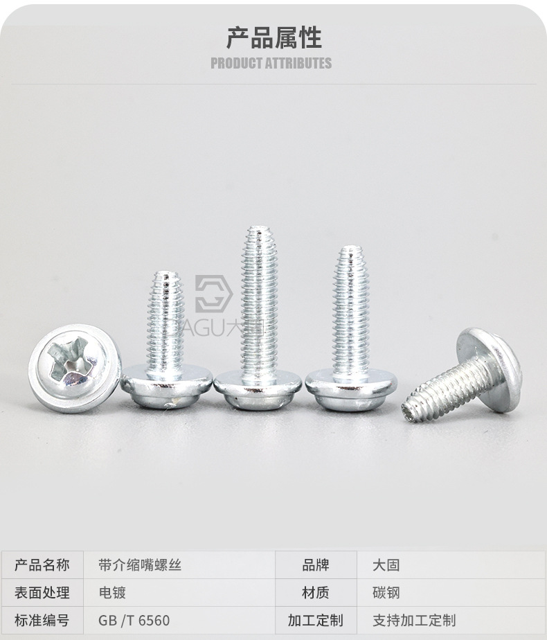 商品名称:带介缩嘴带垫缩咀缩嘴十字镀镍白锌螺钉压花防转螺丝非三角牙自锁