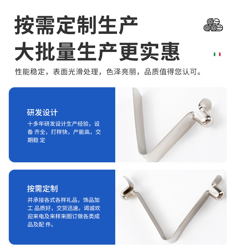 商品名称:不锈钢V型弹簧片实心旗杆拖把刮刮乐管内五金定位卡扣6x9x37