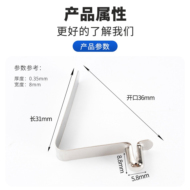 商品名称:5.8mm单珠空心锰钢不锈钢镀镍镀蓝锌V型U型弹片弹扣 管内定位卡扣