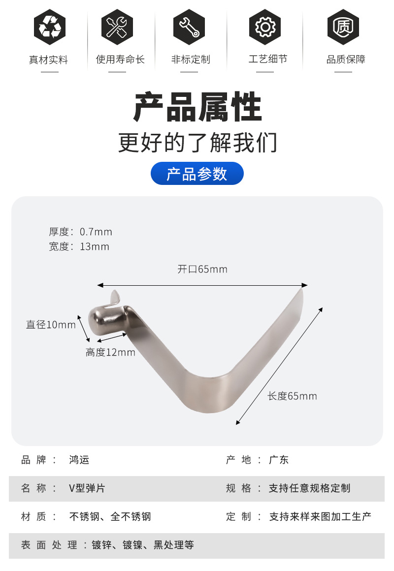 商品名称:V型弹簧片椅帐篷雨伞管内五金位定位弹片冲压件10x12x65mm0.7x13m