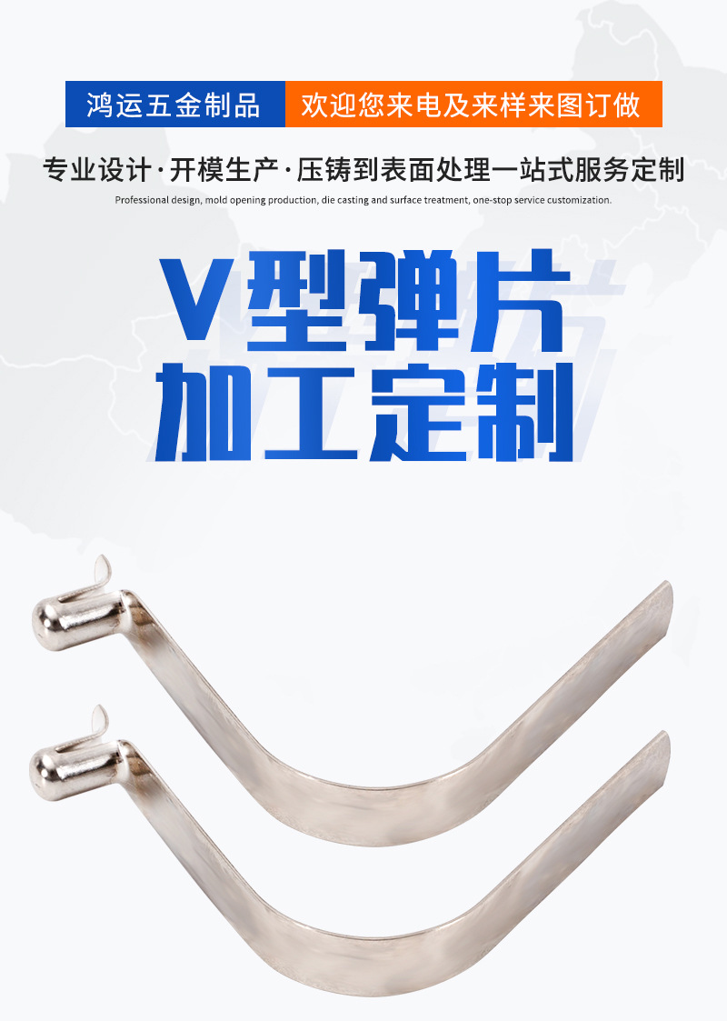 实心单珠V型弹簧片晾衣杆专用 管内定位弹片锰钢弹扣7.5x8x44mm