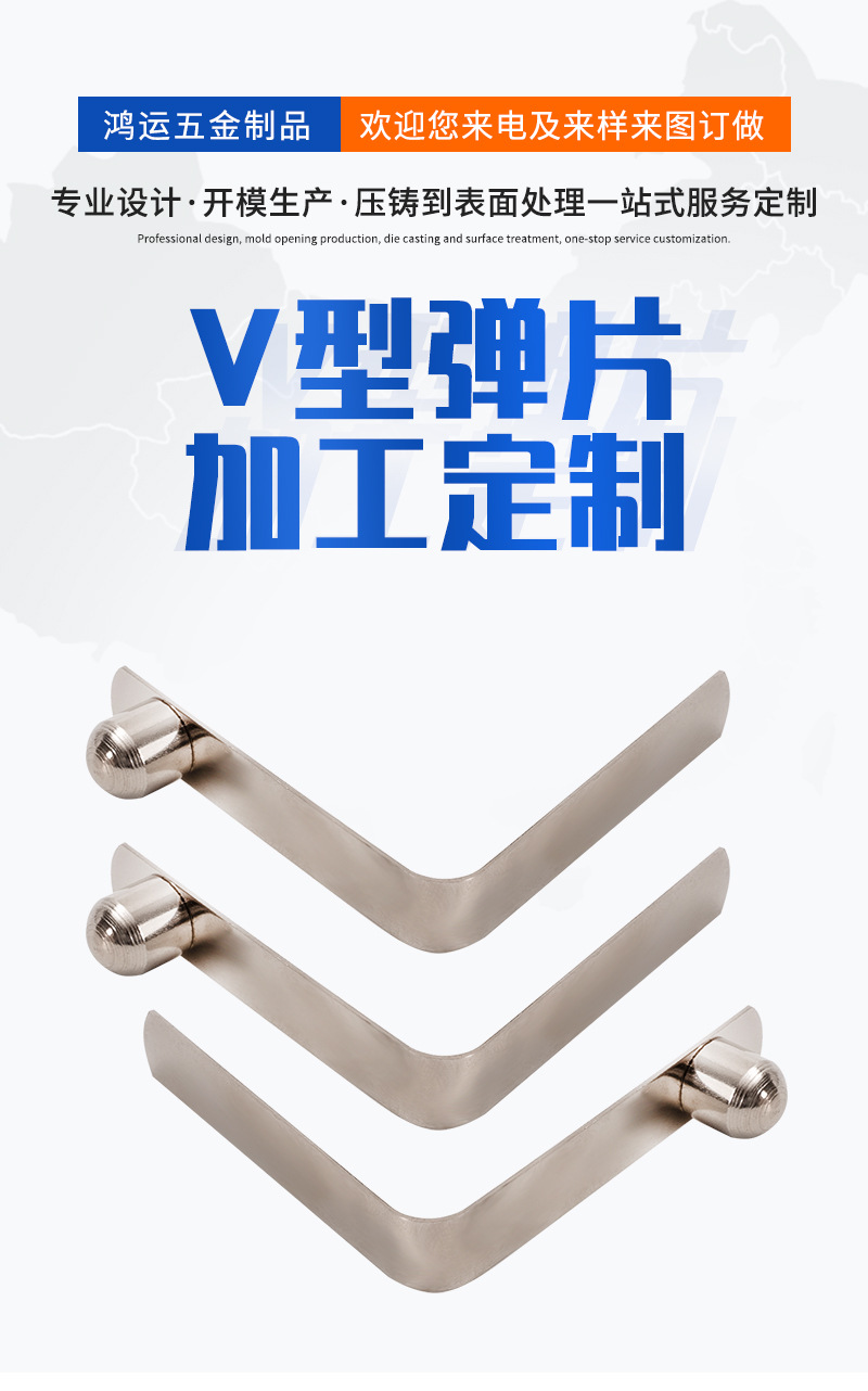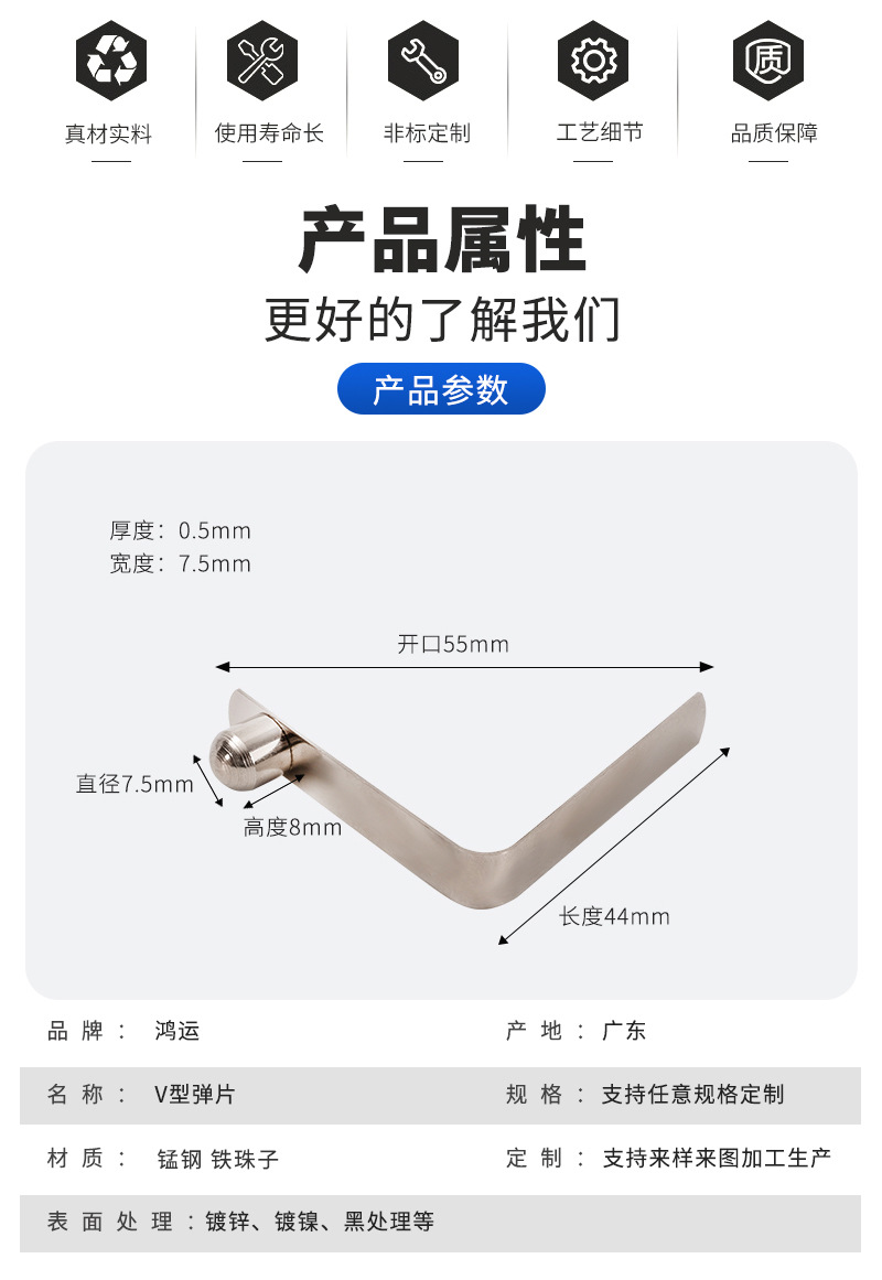 商品名称:实心单珠V型弹簧片晾衣杆专用 管内定位弹片锰钢弹扣7.5x8x44mm