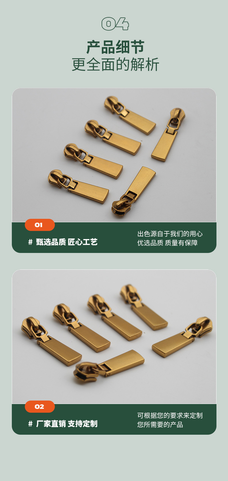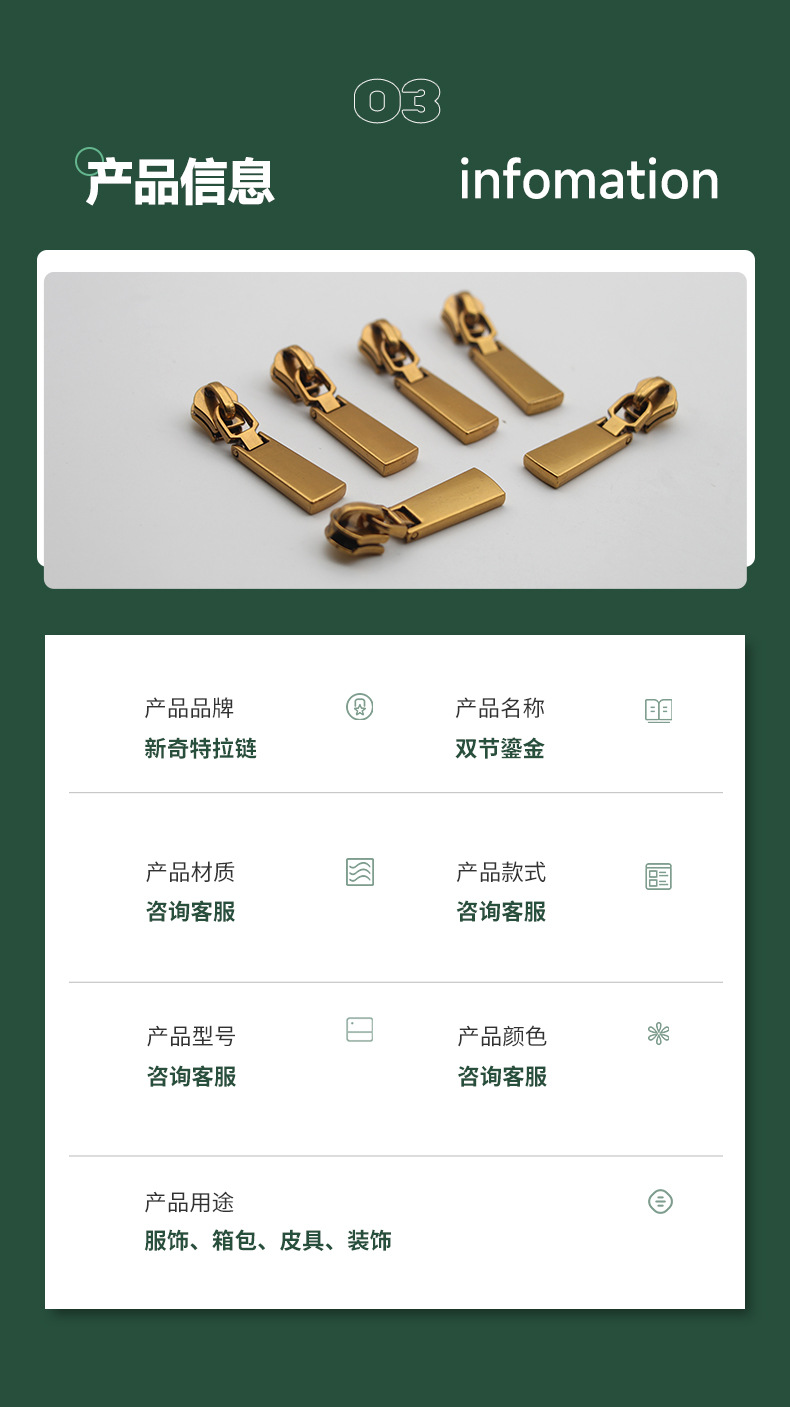 商品名称:5号双节拉链头 挂镀鎏金拉头 新款箱包皮具金属拉链头 工厂现货