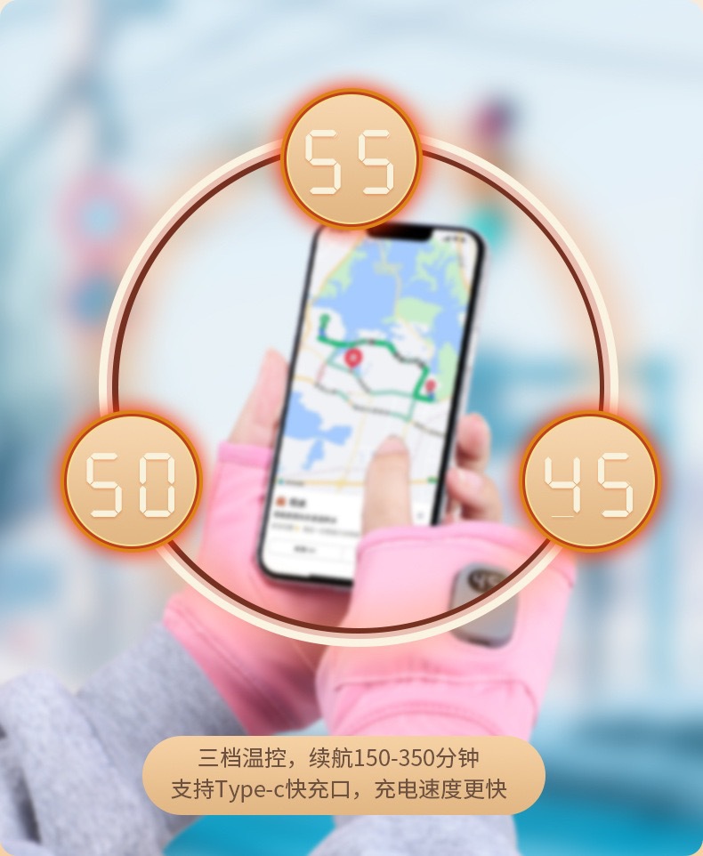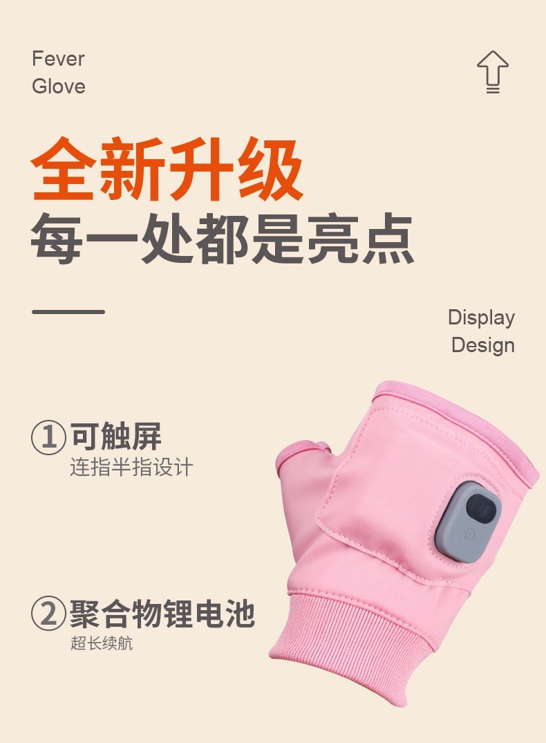 商品名称:定制新款厂家现货电加热USB充电分指半指触屏智能发热冬季保暖手