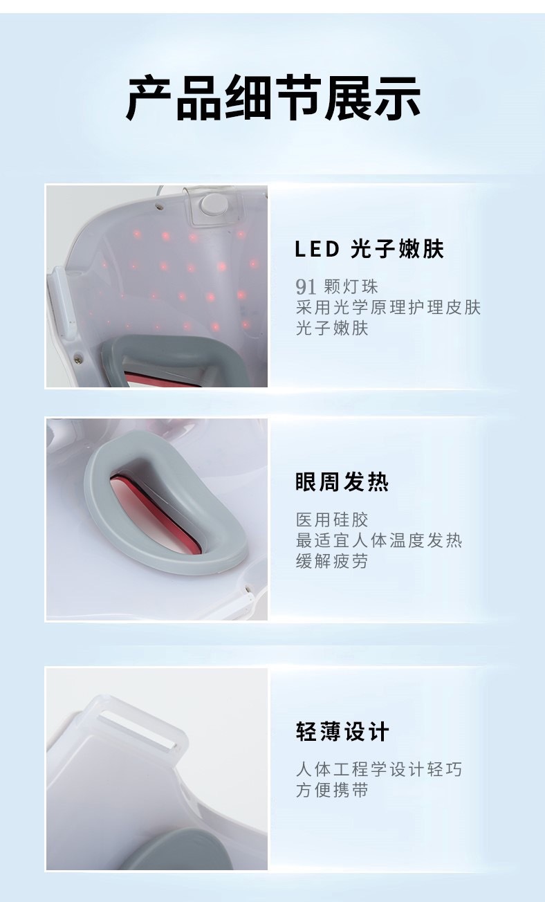 商品名称:跨境定制LED光子嫩肤加热面罩美容仪嫩肤仪红蓝光谱仪大排灯美容