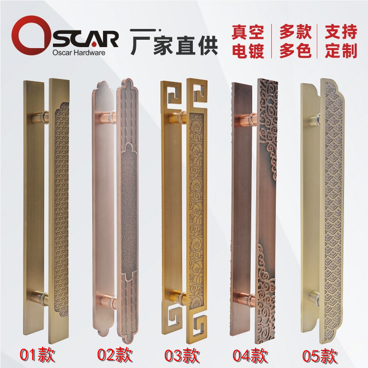 玻璃门拉手中式仿古祥云大门拉手 雕刻铝板门把手酒店复古门扶手