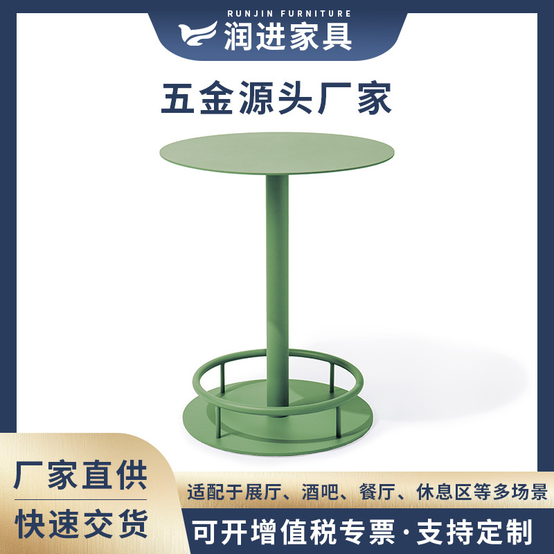 铁艺户外花园休闲站台桌咖啡厅烘焙店露天小圆桌金属高脚桌椅定制