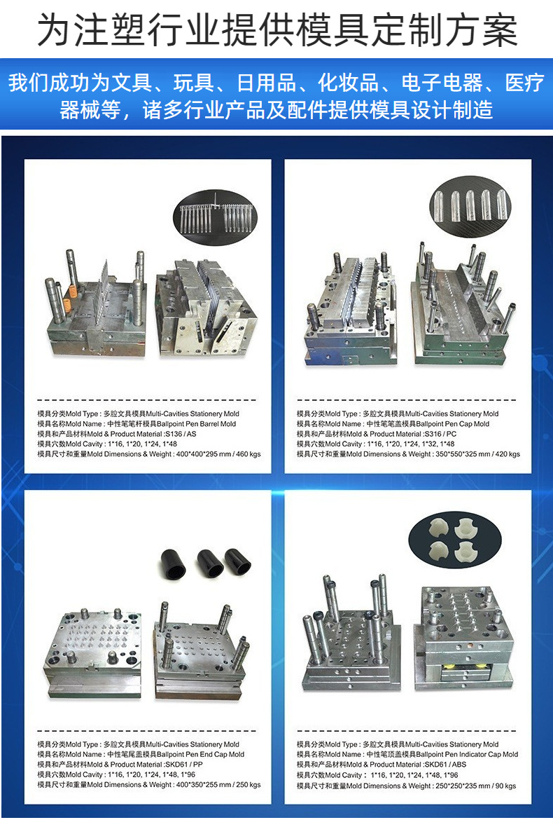 笔盖多腔模具 笔模具文具用品 开模定制 注塑模具厂家