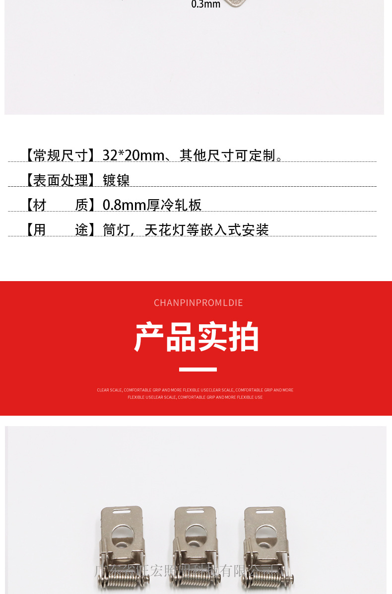 商品名称:32长筒灯弹簧灯具弹簧夹厂家批发灯饰五金配件薄款天花灯卡簧卡扣