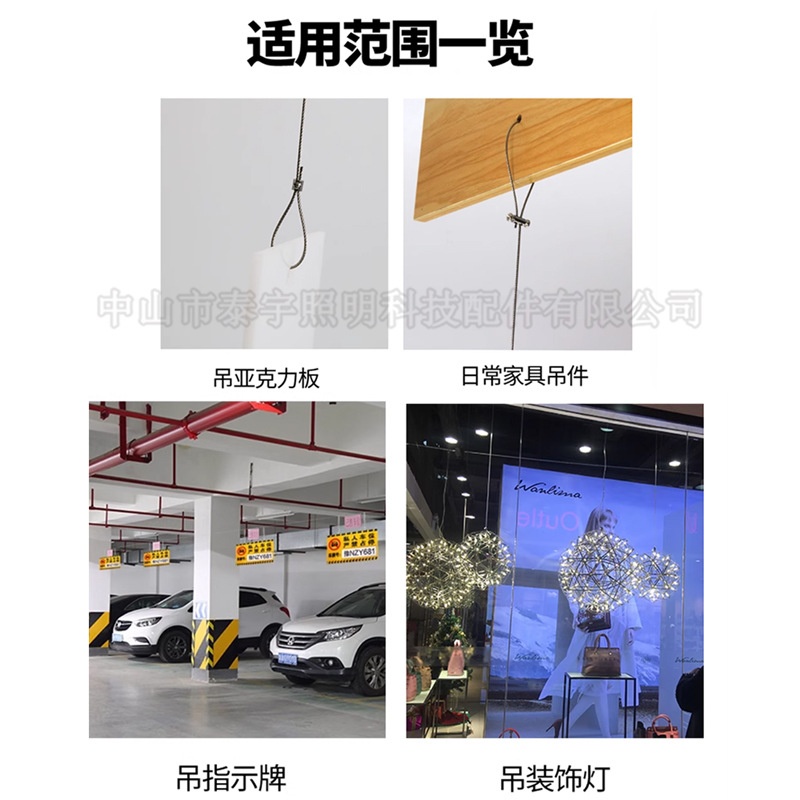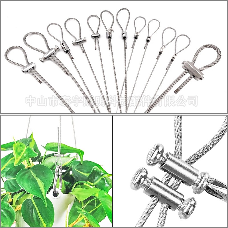 商品名称:供应钢丝绳锁线器可调节304不锈钢丝绳晾衣架挂画自锁双孔卡线器