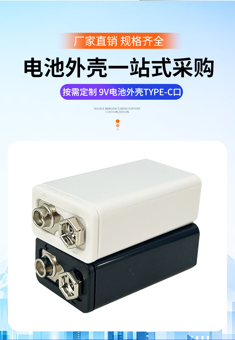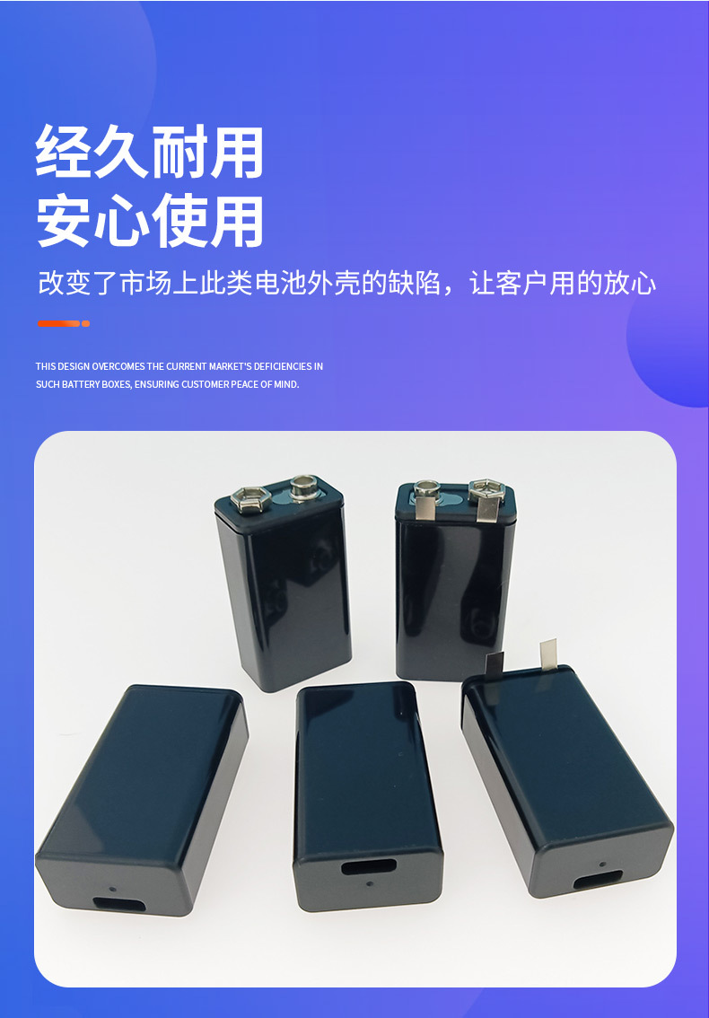 Type-C充电口电池盒9V电池壳锂电池壳6F22锂电池盒9V方块锂电池盒