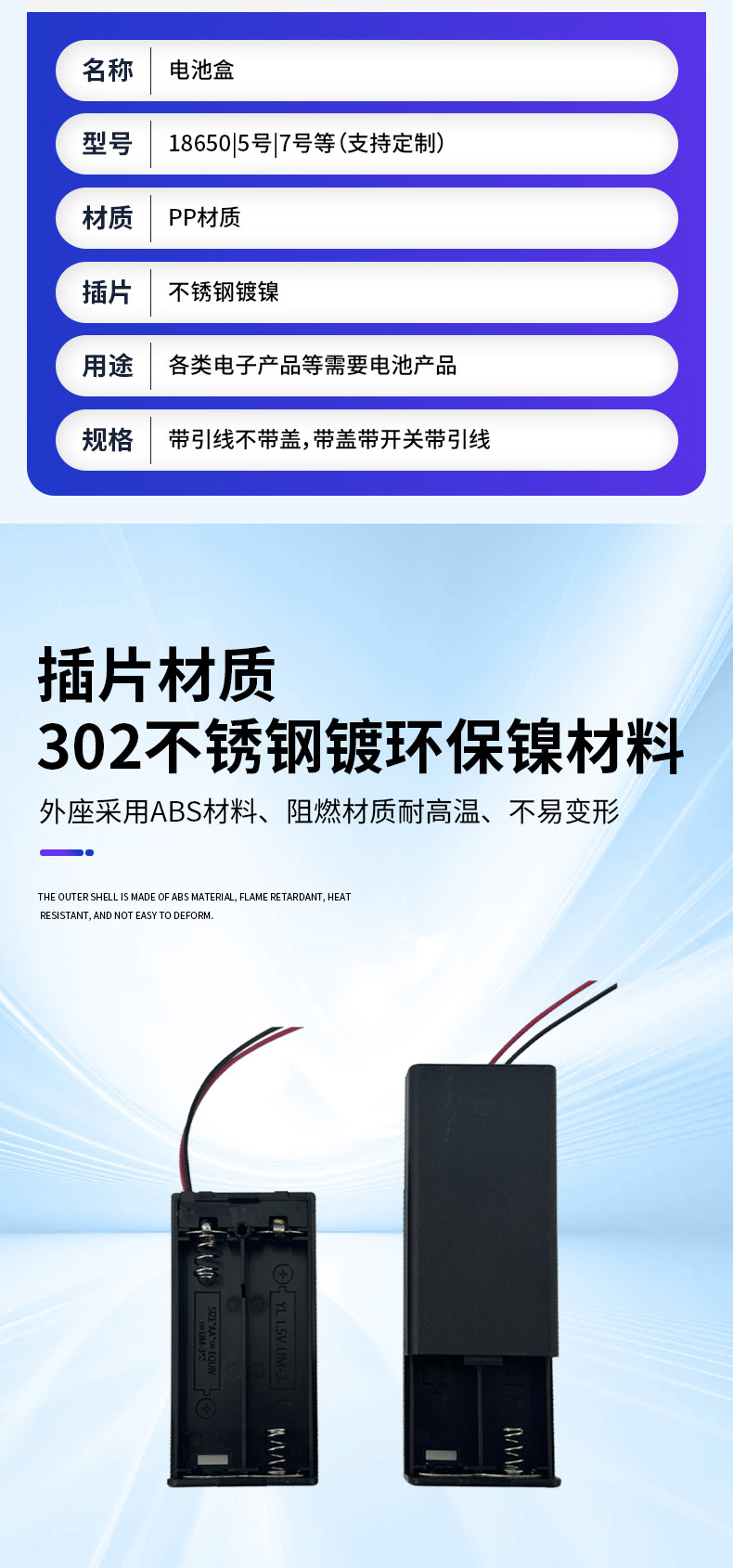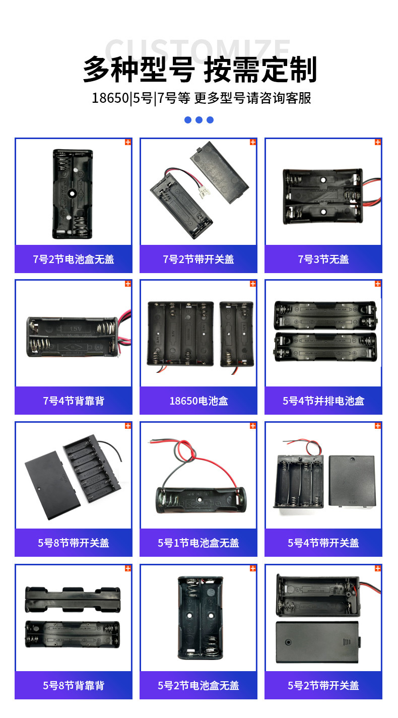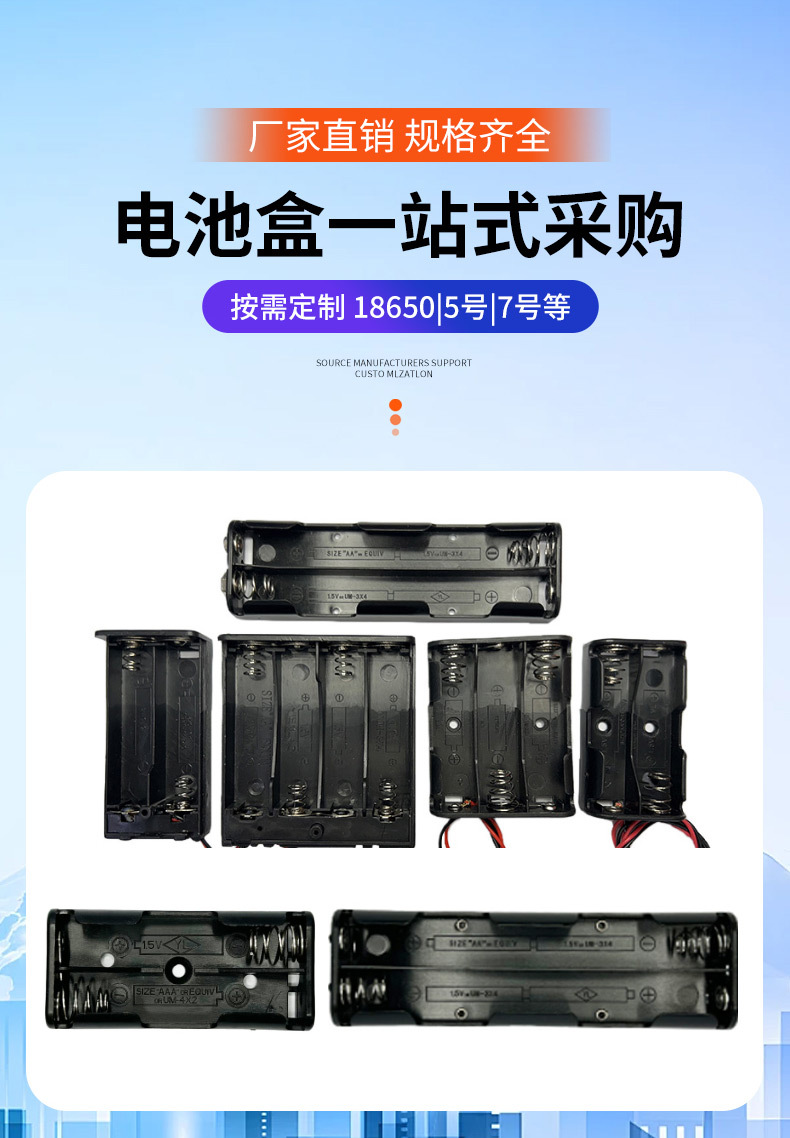 商品名称:4四节AA5五号无盖无开关6V电池盒装弹簧万能输出6V五5号AA电池盒