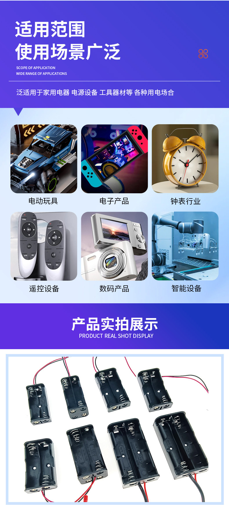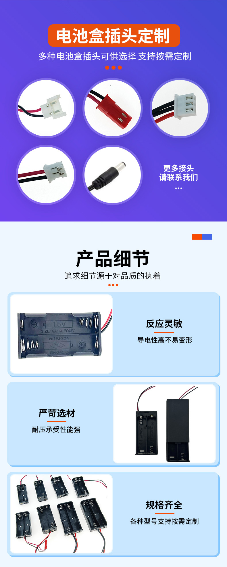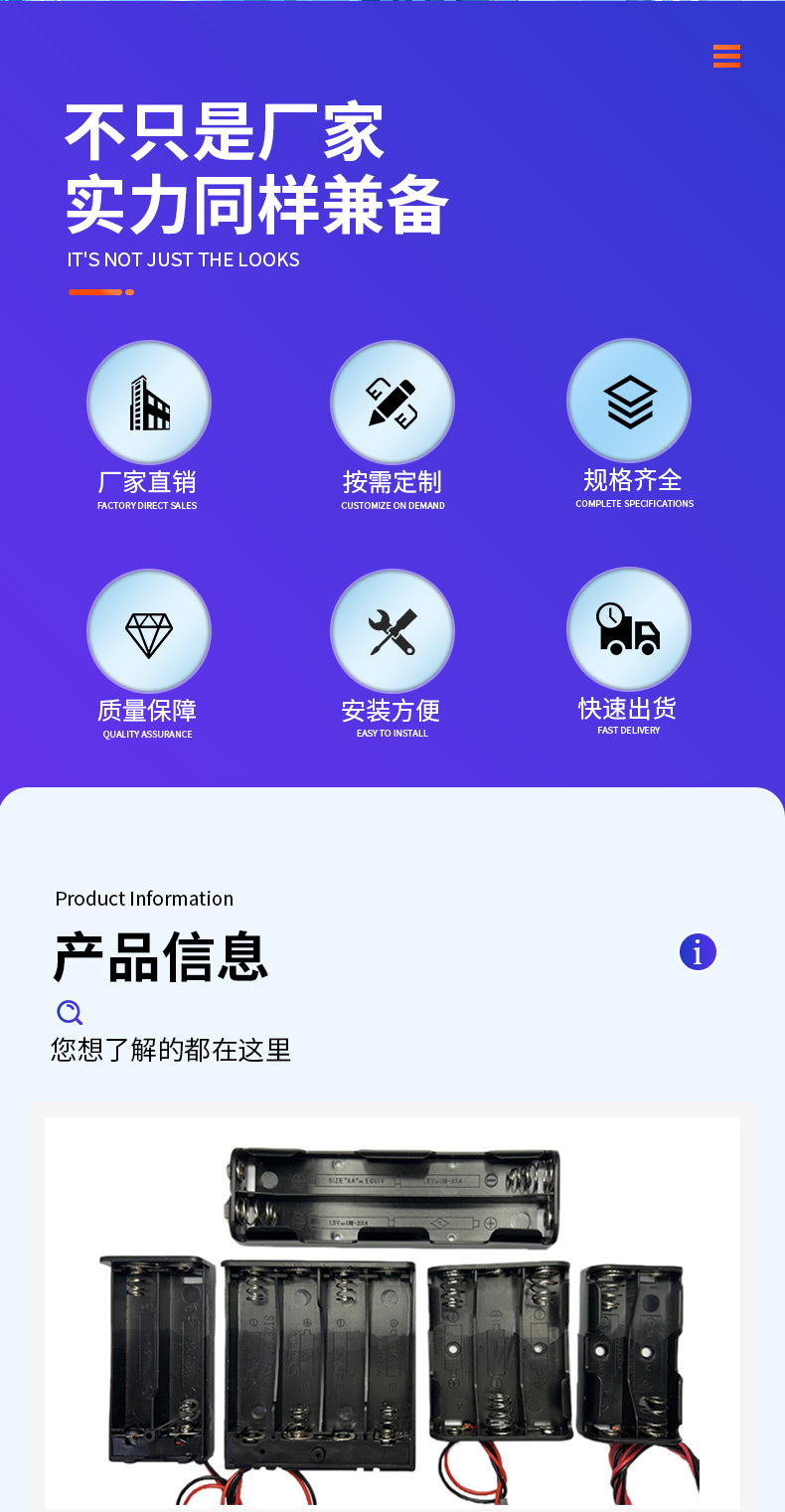 商品名称:4四节AA5五号无盖无开关6V电池盒装弹簧万能输出6V五5号AA电池盒