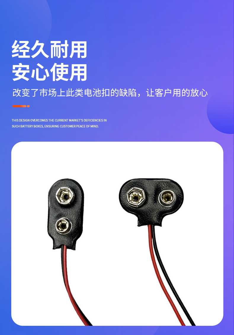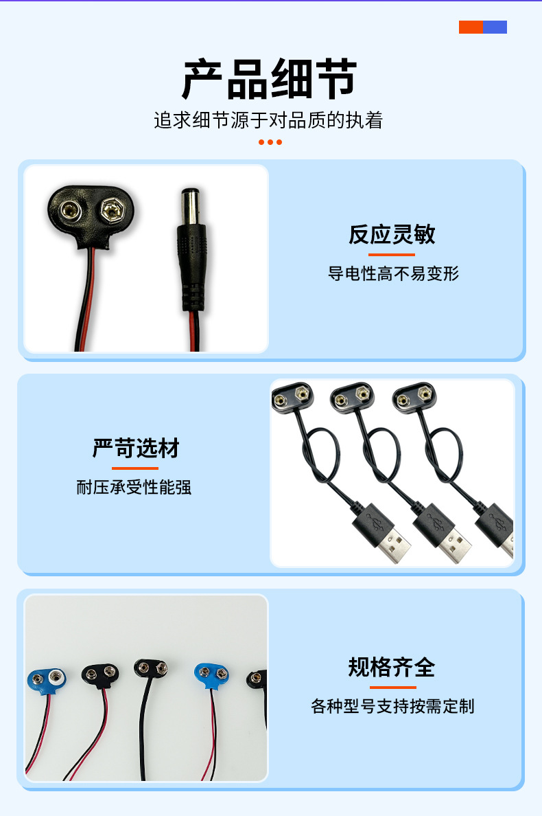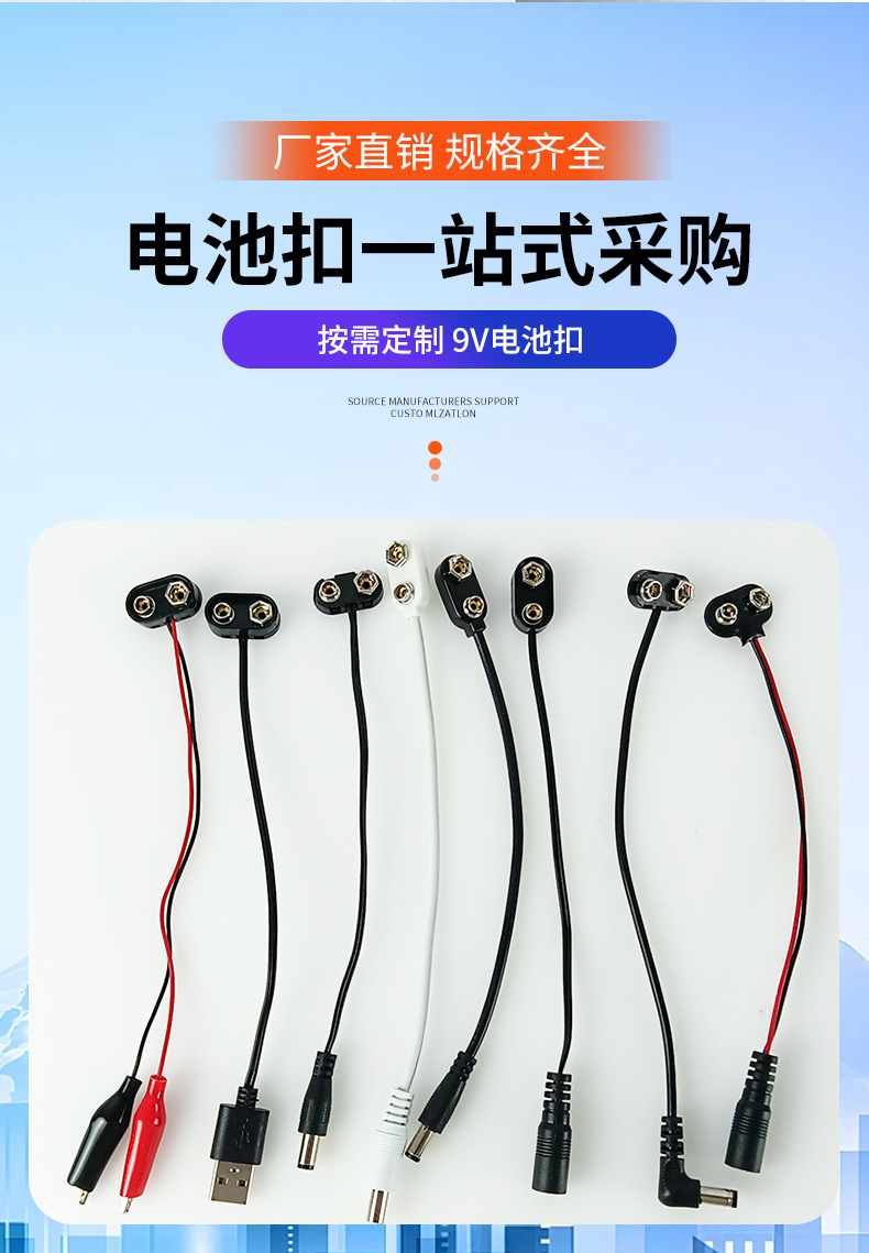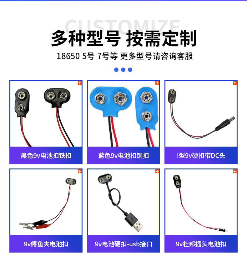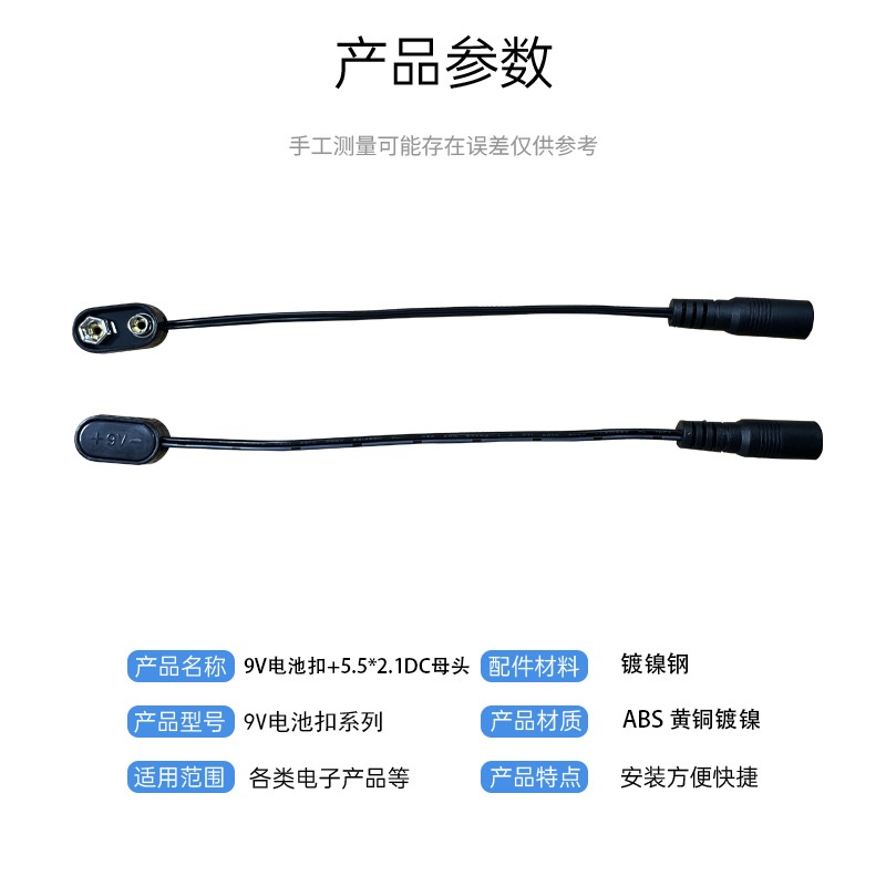 商品名称:9V硬壳电池扣插头DC公头母头连接器耐用的9V电池配件卡扣仪
