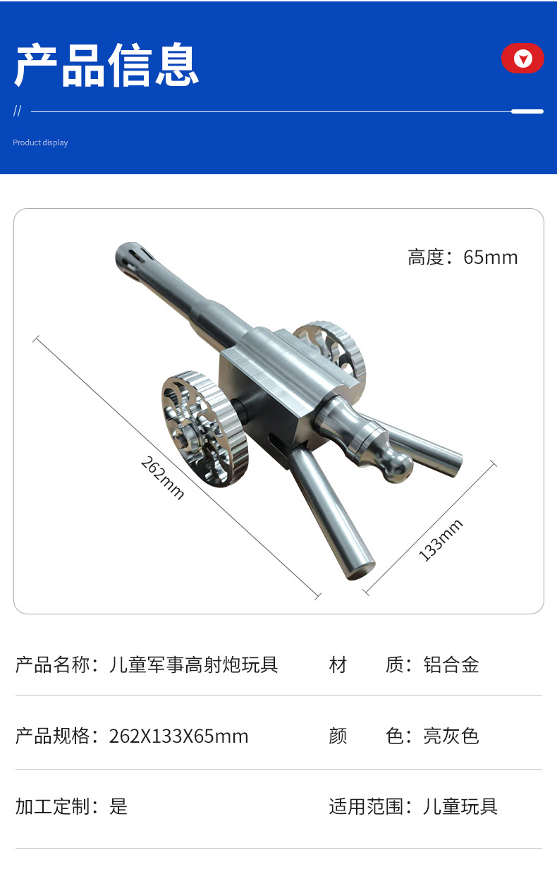 商品名称:跨境儿童军事高射炮玩具铝合金儿童车炮模型摆件大炮模型装饰批发