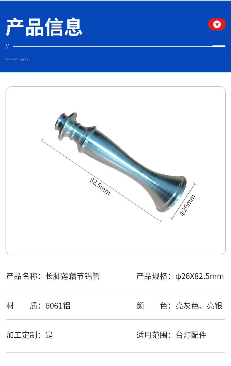 商品名称:新款长脚莲藕节铝管台灯配件灯具中节铝管外壳台灯套件管件批发