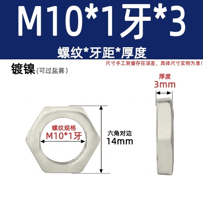 铁皮六角螺母(细牙)M10*1*3镀镍(可过盐雾)