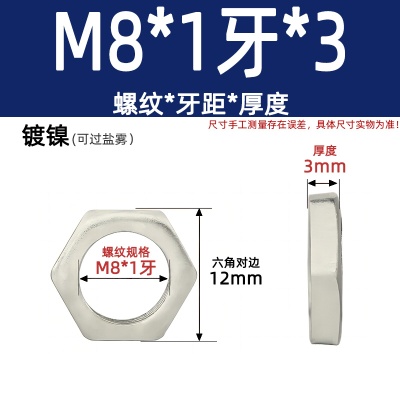 铁皮六角螺母(细牙)M8*1*3镀镍(可过盐雾)