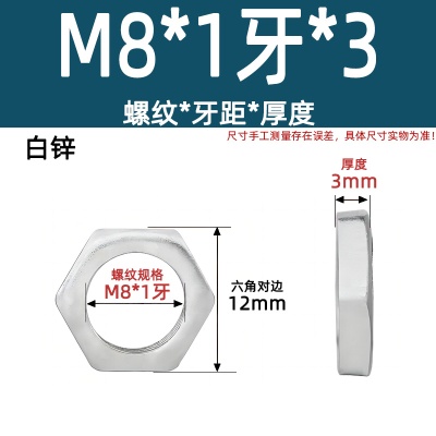 铁皮六角螺母(细牙)M8*1*3蓝白锌(可过盐雾)