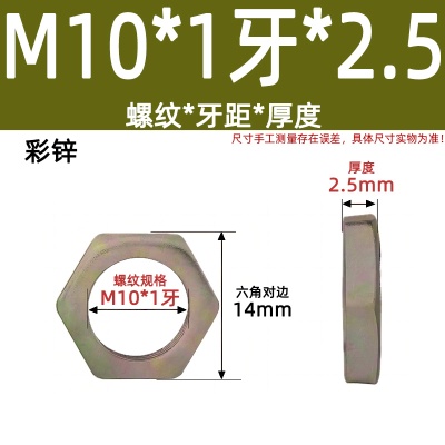 铁皮六角螺母(细牙)M10*1*2.5五彩
