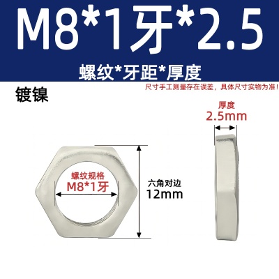 铁皮六角螺母(细牙)M8*1*2.5镀镍(可过盐雾)
