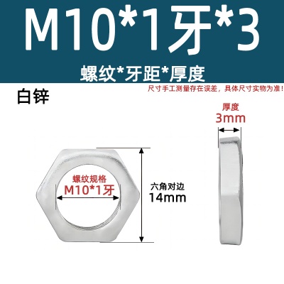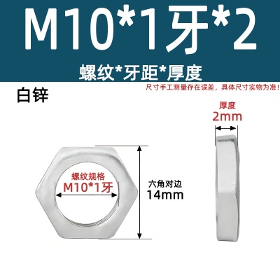 铁皮六角螺母(细牙)M10*1*2蓝白锌(可过盐雾)