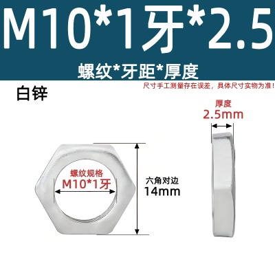 铁皮六角螺母(细牙)M10*1*2.5白锌