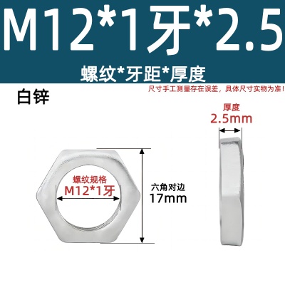 铁皮六角螺母(细牙)M10*1*2.5蓝白锌