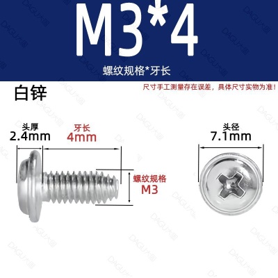 商品名称:带介缩嘴带垫缩咀缩嘴十字镀镍白锌螺钉压花防转螺丝非三角牙自锁