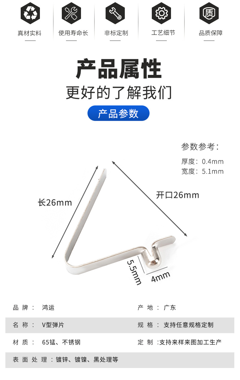 商品名称:单珠空心4mmV型弹片弹簧钢异形U型弹片C型弹片管内定位铆接弹簧片